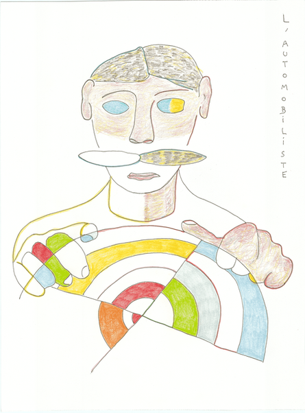 L'automobiliste - Peinture au crayon - 24 cm x 32 cm - 2022